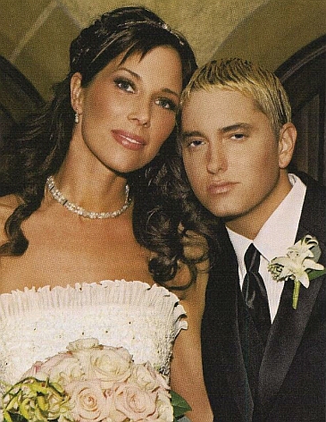Kim Scott (była żona) - Eminem i Kim poznali się w liceum i tam też zaczęli się ze sobą spotykać. Już w grudniu 1995 roku na świat przyszła ich córka Hailie Jade Scott. A w lecie 14 czerwca 1999 roku Marshall i Kim pobrali się. Ich związek nie trwał długo. 4 lipca 2000r. Eminem zobaczył, jak Kim całuje się z niejakim Juanem Guerrą na parkingu, podszedł do niego i zaczął grozić mu bronią. W efekcie został zatrzymany przez policję, a sprawę opisała prasa. Po tych wydarzeniach Kim próbowała popełnić samobójstwo, podcięła sobie żyły, ale lekarze ją odratowali. W marcu 2001r. doszło do rozprawy sądowej, a wyrok uprawomocnił się w październiku. Kim dostała 450 tys. dolarów na nowy dom, a sąd przyznał jej opiekę nad Hailie. W tym samym roku Kim urodziła dziecko (córkę Whitney) niejakiemu Ericowi Hartterowi. W 2006 roku Eminem i Kim wzieli ponownie ślub, ale po kilku miesiącach ich związek się ponownie rozpadł.